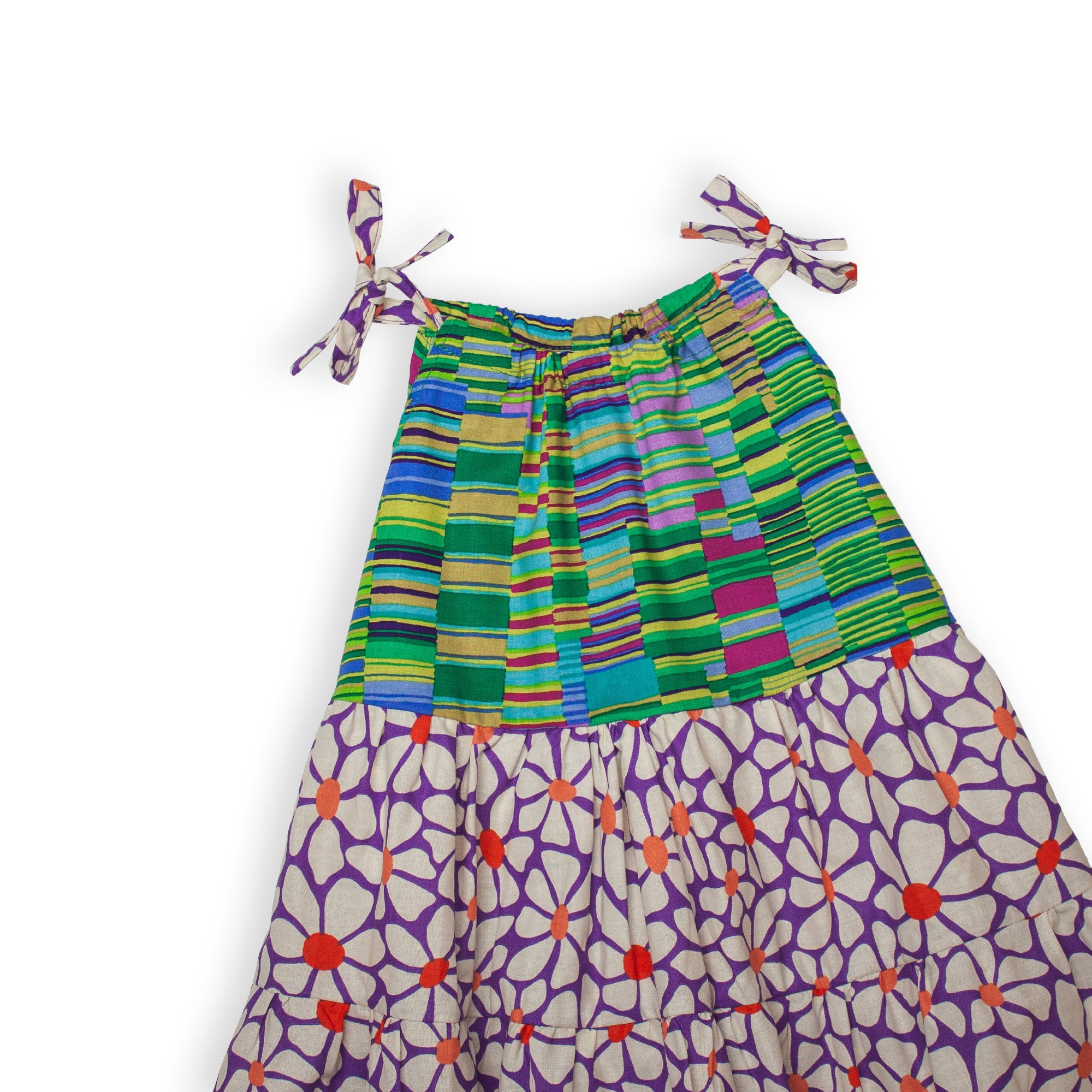 This colorful Elisa Dress is crafted from 100% soft cotton and features a mix of vibrant, contrast prints that are as unique and fun as your little one. The relaxed fit keeps things breezy and comfy, while the adjustable straps ensure a perfect fit for all their everyday adventures or special moments.